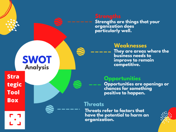 The SWOT analysis is a strategic analysis tool that allows the company to carry out an external diagnosis (evolution of the market, competition, legislation, etc.) and an internal diagnosis (technology, positioning, skills, etc.) in order to identify strengths/ weaknesses and opportunities / threats. This is most often done for each area of strategic activity an allows the company to make the necessary decisions (commercial, marketing, financial,…)